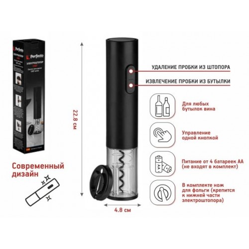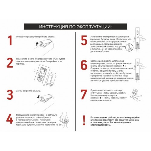 - Подходит для большинства стандартных размеров винных бутылок
