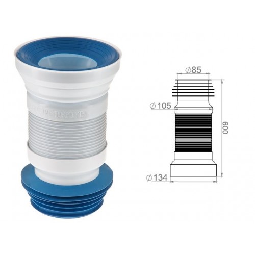 Благодаря своей гибкости и эластичности гофра для унитаза позволяет смонтировать унитаз в удобном для вас месте и с разным удалением от канализационного стояка.