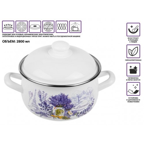 50-360928 Кастрюля стальная эмалированная, 2.8 л, серия Букет лаванды, PERFECTO LINEA,