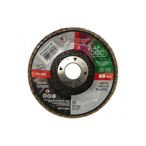Круг лепестковый 125х22мм А80 конич. КЛТ6 Economy LUGAABRASIV (Увеличенный угол наклона опорной тарелки)
