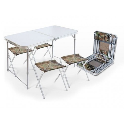 Набор NIKA ССТ-К2 это складной, многофункциональный стол с четырьмя стульями для отдыха на природе. Конструкция выполнена с использованием высококачественных материалов. Металлические трубки основания покрыты защитной эмалью, столешница выполнена из влагостойкого пластика, материал сиденья стульев имеет водоотталкивающую пропитку (не боится воды, легко чистится моющими средствами и устойчива к загрязнениям). Стол 102х50 см регулируется по высоте от 44,5 до 61 см. Допустимая нагрузка на стол 20 кг. Ширина сиденья 30х30 см. Расстояние до сиденья 31,3 см. Стол используют в качестве кейса, помещая внутрь складные стулья. Набор легко складывается, занимает минимум места при транспортировке. В сложенном виде имеет ручку для переноски. Габариты в сложенном виде 53х52,5х7 см.
