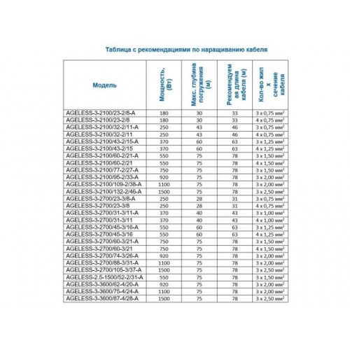 AGELESS - серия насосов с 2м кабелем требующим удлинения (вилки нет)