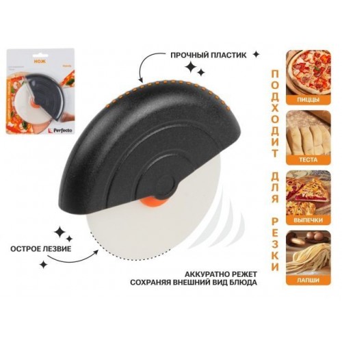 Нож для пиццы с лезвием из полипропилена - это удобный и незаменимый инструмент для быстрой и аккуратной нарезки пиццы. Он оснащен остроконечным лезвием, которое легко проникает в тесто. Нож обладает достаточной прочностью и долговечностью, при этом не наносит повреждений посуде с антипригарным покрытием. Легкий и удобный в использовании, этот нож прекрасно подходит для использования в домашних условиях.