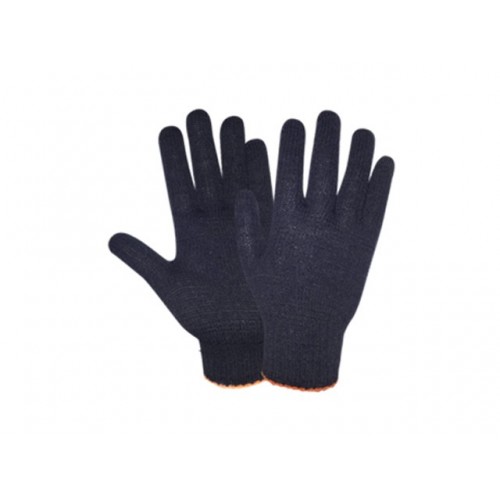 Перчатки рабочие трикотажные х/б черные, без ПВХ покрытия , 5 нитей, 165 текс, ручной оверлок, Ми