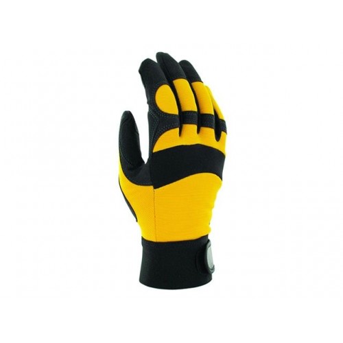 Защитные антивибрационные перчатки Jeta Safety трикотажные, с ладонной стороны искусственная кожа, черно-желтые (6 пар в упак.)