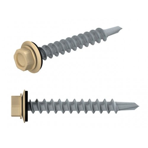 Саморез кровельный 4.8х29 мм цинк, шайба с прокл., PT1, RAL 1014 (200 шт в карт. уп.) STARFIX (по дереву, цвет слоновая кость)