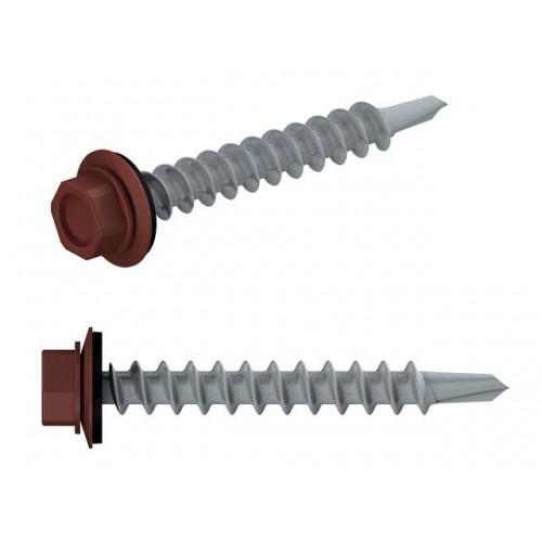 Саморез кровельный 4.8х35 мм цинк, шайба с прокл., PT1, RAL 3009 (70 шт в пласт. конт.) STARFIX (по дереву, цвет оксидно-красный)