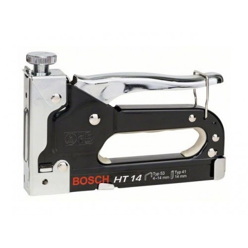 Механический степлер Bosch НТ14 0.603.038.001 предназначен для выполнения работ по обтяжке тканью мебели, а также креплению изолирующего материала, парниковой пленки и пр. Используемый тип скоб 53. Используемый тип штифтов 41.