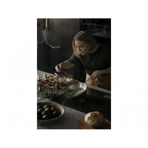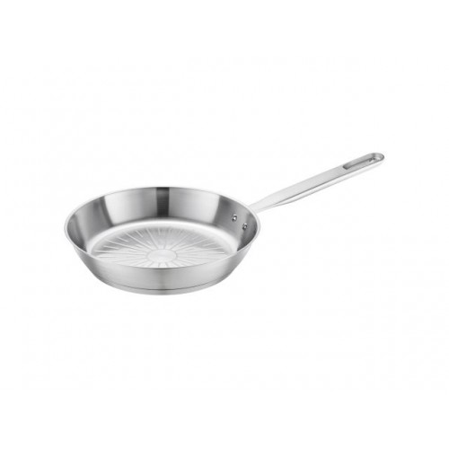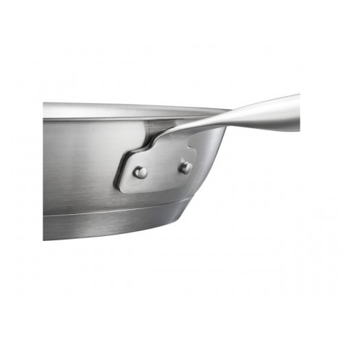 Корпус и ручка сковороды из сверхпрочной нержавеющей стали. Толстое трехслойное дно (алюминиевый сердечник) обеспечивает эффективное и равномерное распределение тепла. Устойчива к высоким температурам (выпечка и жарка) до 270°C. Подходит для всех типов плит, включая индукционные. Можно использовать в духовке и мыть в посудомоечной машине.