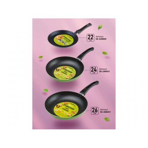 56-240431 Сковорода ф 24х4.3 см, штамп., алюм., антиприг. покр., серия STARCOOK, зеленая, PERFECTO LINEA,