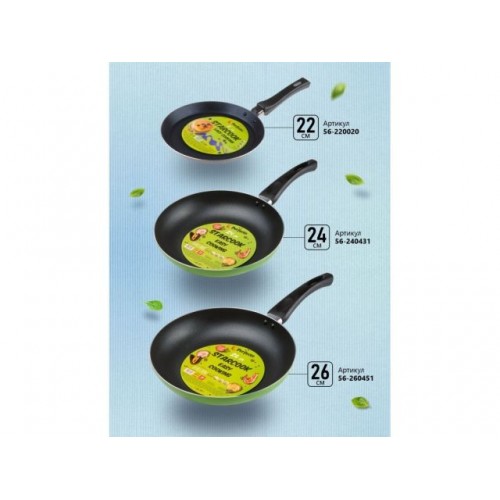 56-240431 Сковорода ф 24х4.3 см, штамп., алюм., антиприг. покр., серия STARCOOK, зеленая, PERFECTO LINEA,