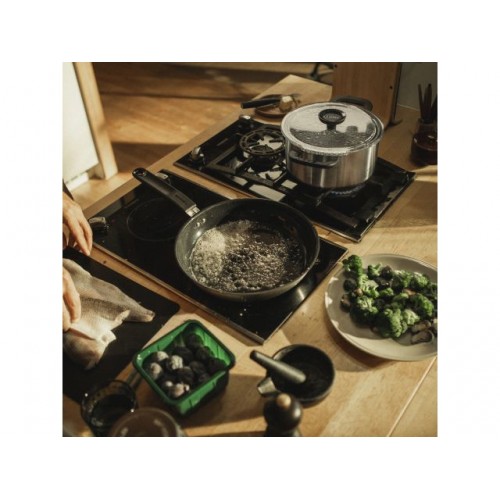 Материал сковороды - переработанная нержавеющая сталь + антипригарное керамическое покрытие Ceratec™, не содержащее пластика. Трехслойное дно. Подходит для всех типов плит, в том числе индукционной. Можно мыть в посудомоечной машине.