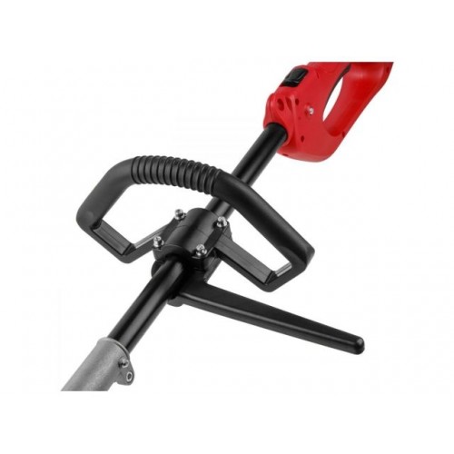 Электрический триммер предназначен для использования на приусадебных участках небольшой и средней площади. Инструмент оснащен мощным двигателем, эргономичной прорезиненной дополнительной рукояткой, которая может устанавливаться в любом удобном положении и также разборной штангой. Специальный кожух защищает оператора от повреждений и летящей травы. Изогнутая штанга обеспечивает удобную работу в труднодоступных местах.. В комплект входит наплечный ремень, который способствует меньшей утомляемости при работе, и косильная головка..
